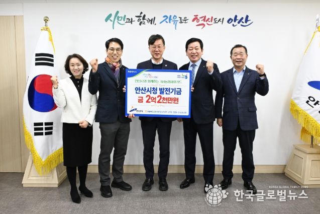 (한국글로벌뉴스 - 박소연 기자) 안산시는 지난 25일 안산시청에서 NH농협은행 안산시지부와 발전 기금 전달식을 갖고 2억 2천5백여만 원의 기금을 전달받았다고 26일 밝혔다.