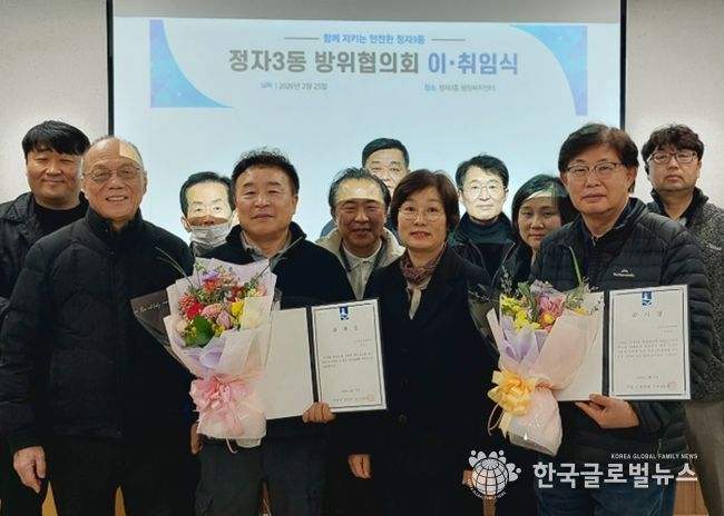 (한국글로벌뉴스 - 박소연 기자) 수원시 장안구 정자3동은 지난 25일, 정자3동 행정복지센터에서 방위협의회 위원장 이·취임식을 개최했다.