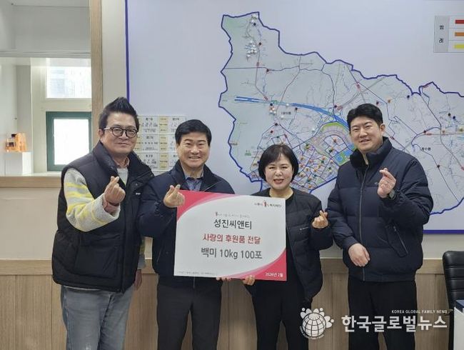 한성운 ㈜성진씨앤티 대표이사는 “지난해 추석에 이어 올해도 백미 기부를 하게 됐다. 비록 설 명절에 맞춰 기부하지는 못했지만, 후원한 쌀이 관내 어려운 이웃들에게 큰 도움이 됐으면 좋겠다”라고 말했다.