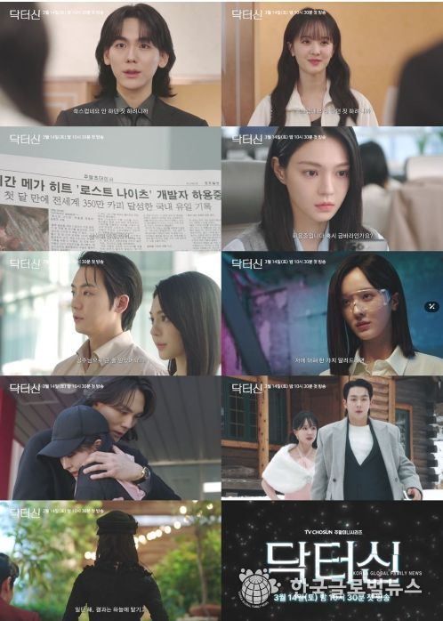 한편 TV CHOSUN 새 주말미니시리즈 ‘닥터신’은 불의의 사고로 혼수상태에 빠진 톱스타와 그녀를 사랑했던 남자, 그녀를 사랑하고 있는 남자들의 기이한 로맨스를 담는다. 오는 3월 14일(토) 밤 10시 30분 TV CHOSUN과 쿠팡플레이에서 동시 공개된다.
