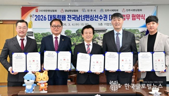 (한국글로벌뉴스 - 박지형 기자) 진주시는 4일 시청 기업인의 방에서 ‘2026 제66회 대통령배 전국남녀펜싱선수권대회’의 성공적인 개최와 상호 협력을 위한 업무협약을 체결했다고 밝혔다.