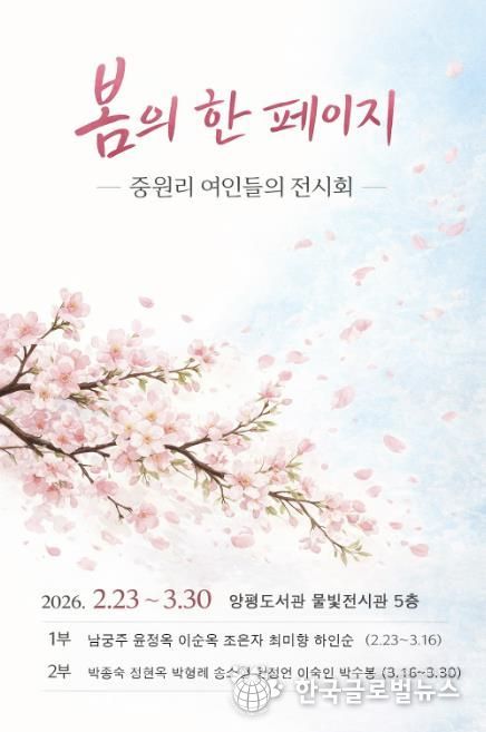 (한국글로벌뉴스 - 박소연 기자) 양평군은 양평도서관 5층 ‘물빛전시관’에서 용문면 중원리 여성 미술 동호회 회원들의 회화 전시 ‘봄의 한 페이지’를 개최한다고 밝혔다.