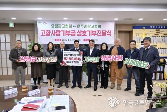 여주시광고협회 윤형록 회장은 “이번 상호 기부가 두 지역의 우호를 더욱 돈독히 하는 계기가 되길 바란다”며 “앞으로도 다양한 교류를 통해 지역사회에 도움이 되는 활동을 이어가겠다”고 말했다.