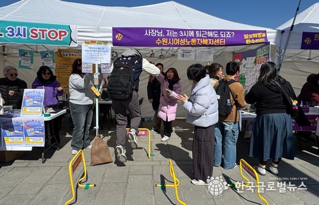 (한국글로벌뉴스 - 박소연 기자) 수원시 여성노동자복지센터는 7일 광화문 서십자각에서 열린 ‘제41회 한국여성대회’ 현장에서 시민을 대상으로 ‘일·생활 균형 인식개선 캠페인’을 펼쳤다.