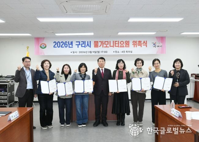 (한국글로벌뉴스 - 박종욱 기자) 구리시는 지난 9일 시청 4층 회의실에서 지역 물가 안정과 공정한 소비 환경 조성을 이끌어갈 ‘2026년 신규 물가 모니터 요원 위촉식’을 개최했다.