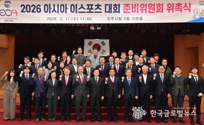 (한국글로벌뉴스 - 박지형 기자) 진주시는 11일 시청 2층 시민홀에서 ‘2026 아시아 이(e)스포츠대회’ 준비위원회 위촉식을 열고, 대회의 성공적인 개최를 위한 지역 협력 기반을 구축했다.