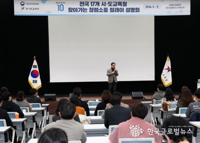 (한국글로벌뉴스 - 박소연 기자) 경기도교육청이 청탁금지법 시행 10주년을 맞아 국민권익위원회와 함께하는 ‘찾아가는 청렴소통 릴레이 설명회’를 12일 개최했다.