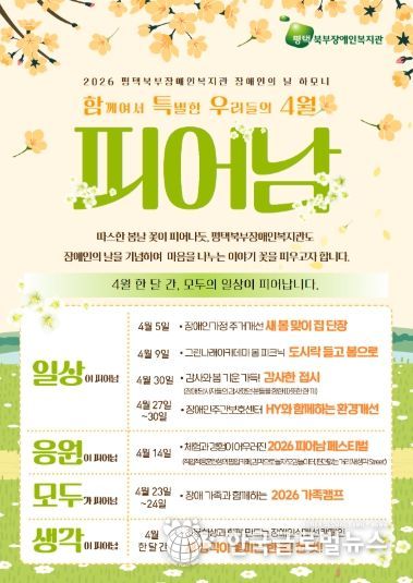 (한국글로벌뉴스 - 박소연 기자) 평택북부장애인복지관에서는 제 46회 장애인의 날을 맞이하여, 4월 한 달 간2026 장애인의 날 행사 ‘함께여서 특별한 우리들의 4월, '피어남'’을 진행할 예정이다.