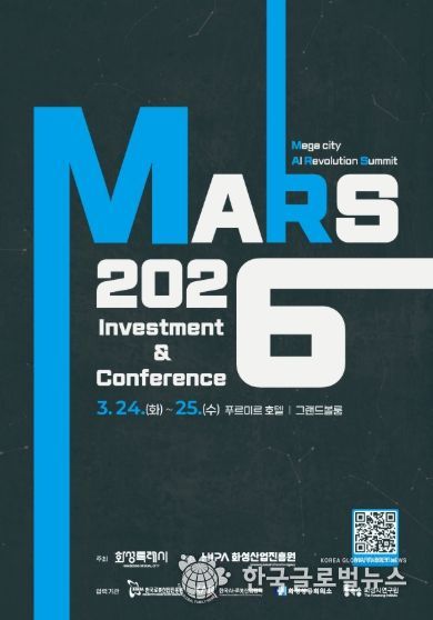 (한국글로벌뉴스 - 박소연 기자) 화성특례시가 주최하고 화성산업진흥원이 주관하는 ‘MARS 2026 투자유치&컨퍼런스’가 오는 3월 24일부터 이틀간 화성 푸르미르 호텔에서 개최된다.