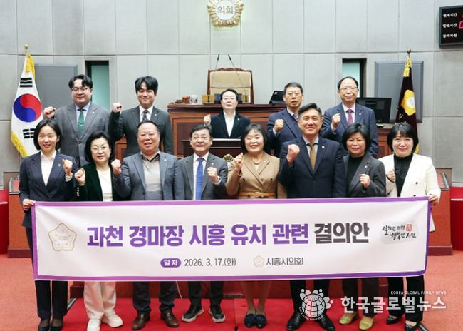 (한국글로벌뉴스 - 박소연 기자) 시흥시의회가 3월 17일 제334회 임시회 제1차 본회의에서 의원 전원이 발의한 '과천 경마장 시흥 유치 관련 결의안'(대표 발의 김선옥 의원)을 의결했다.