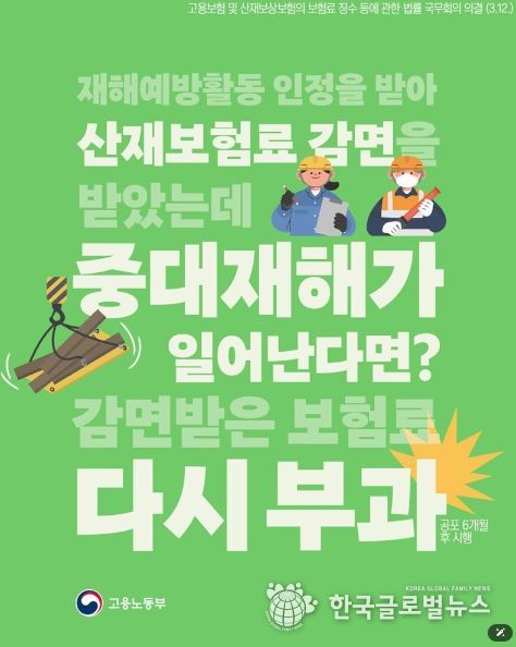 (한국글로벌뉴스 - 박경희 기자) 재해예방활동 인정을 받아 산재보험료 감면을 받았는데 중대재해가 일어난다면?
