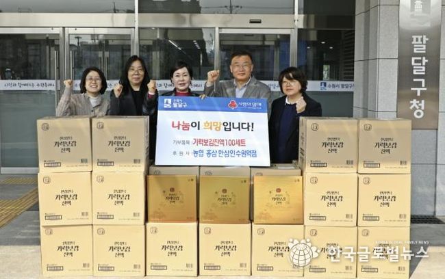 (한국글로벌뉴스 - 박소연 기자) 수원시 팔달구는 지난 17일, 농협 홍삼 한삼인 수원역점으로부터 기부받은 기력보감 진액 100세트를 관내 취약계층에 전달하며 건강한 나눔 문화를 실천했다.
