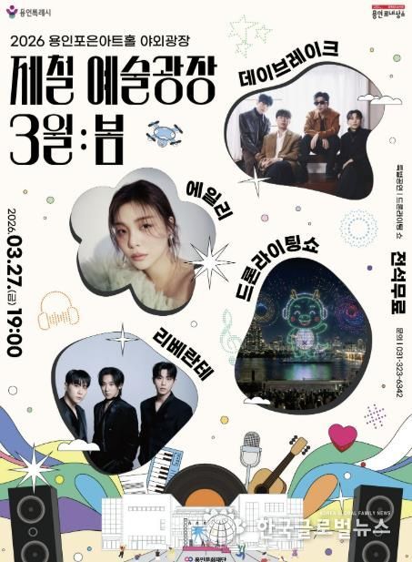 (한국글로벌뉴스 - 박소연 기자) 용인문화재단은 오는 3월 27일 용인포은아트홀 야외광장에서 시민들을 위한 특별한 봄맞이 축제인 ‘제철 예술광장 3월 : 봄’콘서트를 개최한다고 밝혔다.