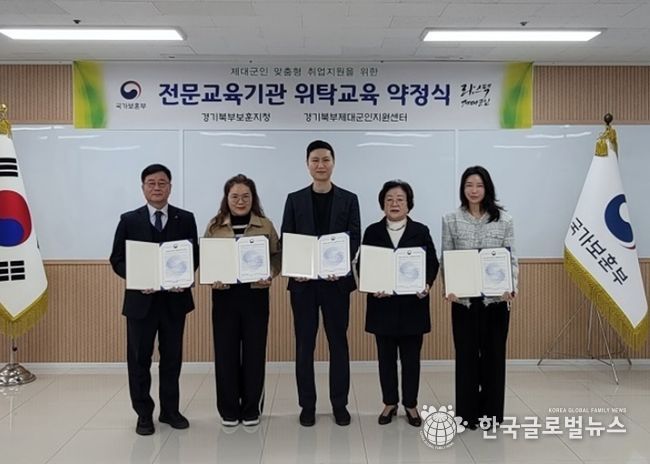 (한국글로벌뉴스 - 박소연 기자) 국가보훈부 경기북부제대군인지원센터는 3월 18일 센터 회의실에서‘2026년도 제대군인 전문교육기관 위탁교육 업무협약식’을 진행하고, 제대군인의 안정적인 사회정착과 취업역량 강화를 위한 교육협력 체계를 구축했다.