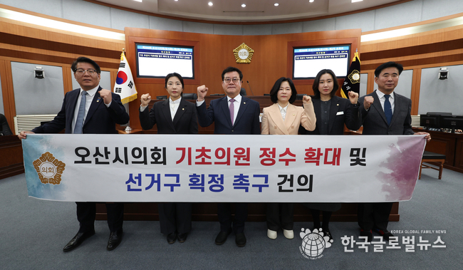 (한국글로벌뉴스 -박소연 기자) 오산시의회(의장 이상복)는 18일 제300회 임시회 제2차 본회의에서 ‘오산시 기초의원 정수 확대 및 선거구 획정 촉구 건의문’을 의결했다. 이 자리에서 시의원들은 한목소리로 제도 개선을 강력히 촉구했다.