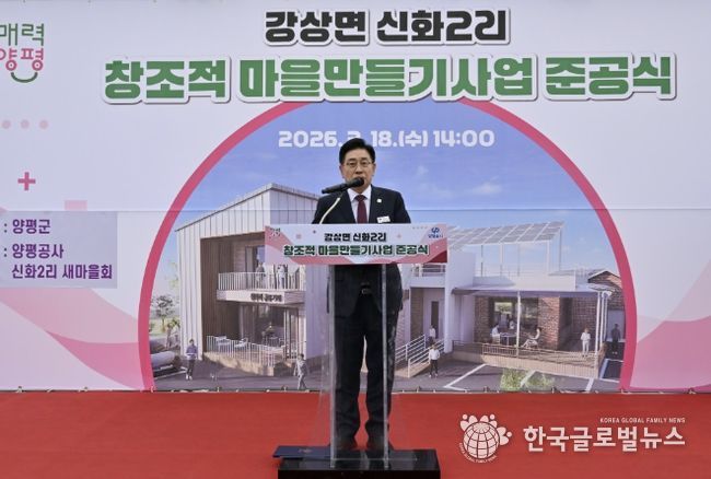 (한국글로벌뉴스 - 박소연 기자) 양평군은 지난 18일 창조적 마을만들기 사업으로 조성한 ‘신화2리 마을회관’ 준공식을 개최했다. 이날 행사에는 전진선 양평군수를 비롯해 지민희 양평군의회 부의장, 송진욱 군의원, 마을 주민 등 100여 명이 참석해 준공을 축하했다.