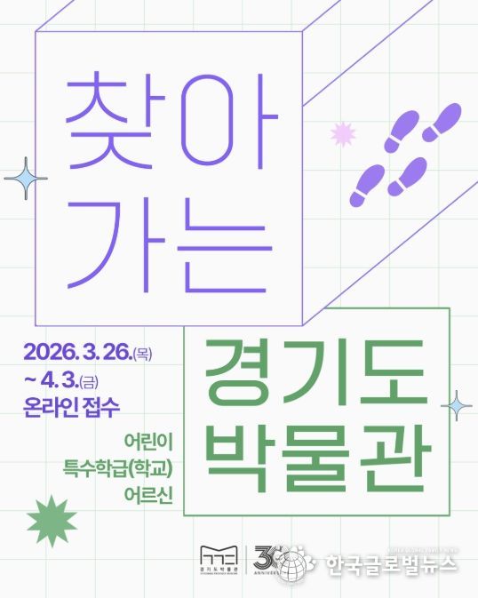 (한국글로벌뉴스 - 박소연 기자) 경기문화재단 경기도박물관은 오는 4월부터 11월까지 문화소외계층을 직접 찾아가는 체험 교육 프로그램인 ‘2026 찾아가는 경기도박물관’을 운영한다. 참여를 희망하는 기관은 오는 3월 26일부터 4월 5일까지 경기도박물관 누리집을 통해 신청할 수 있다.