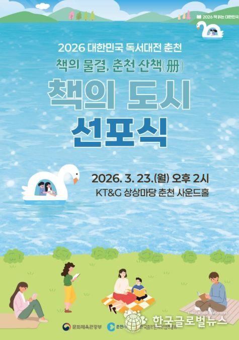 (한국글로벌뉴스 - 박소연 기자) 국내 최대 독서문화 축제인 ‘2026 대한민국 독서대전’의 개최지를 알리는 ‘2026 대한민국 책의 도시 선포식’이 3월 23일 오후 2시, 강원도 춘천시 ‘상상마당’ 사운드홀에서 열린다.