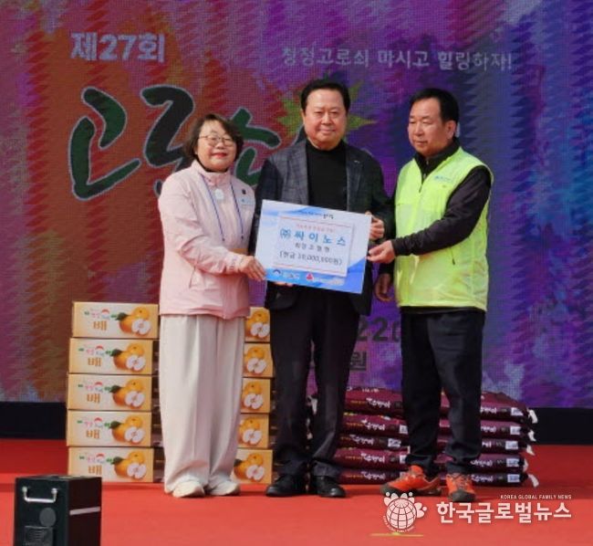 (한국글로벌뉴스 - 박소연 기자) 양평군 단월면은 지난 21일과 22일, 축제 기간 중 단월레포츠공원에서 열린 기념행사에서 ㈜싸이노스 조철형 회장이 이웃돕기 성금 1,000만 원을 전달했다고 밝혔다.