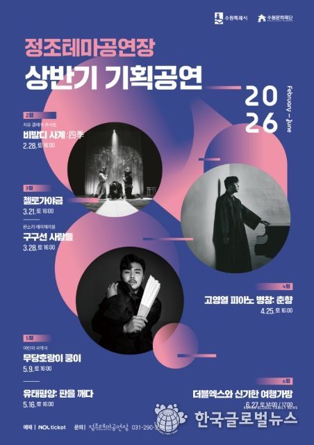 (한국글로벌뉴스 - 박소연 기자) 수원문화재단은 오는 4월부터 6월까지 정조테마공연장에서 전통예술의 현대적 확장을 주제로 한 기획공연 4편을 선보인다.