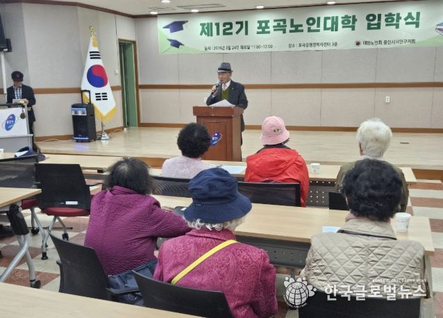 (한국글로벌뉴스 - 박소연 기자) 용인특례시는 24일 처인구 포곡읍행정복지센터 대회의실에서 ‘포곡노인대학 제12기 입학식’이 열렸다고 25일 밝혔다.