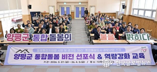 (한국글로벌뉴스 - 박소연 기자) 양평군은 ‘의료·요양 등 지역 돌봄의 통합지원에 관한 법률(이하 돌봄통합지원법)’ 시행일인 27일 개군면을 시작으로, 4월 3일까지 관내 12개 읍면을 순회하며 ‘양평군 통합돌봄 비전 선포식’과 인적안전망 역량강화 교육을 실시한다고 밝혔다.