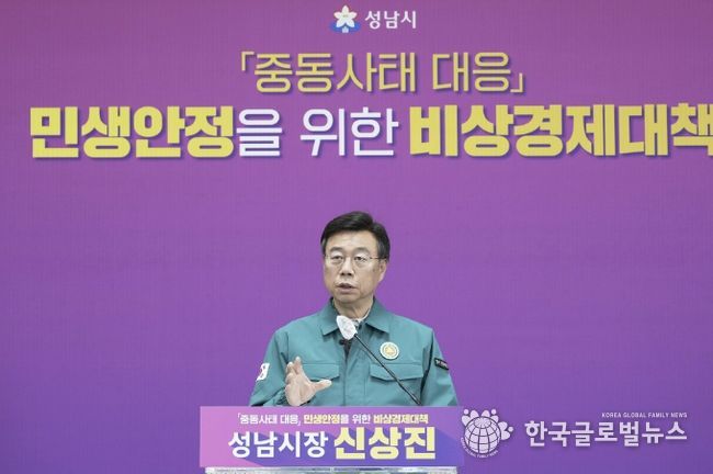 (한국글로벌뉴스 - 박소연 기자) 성남시는 31일 중동 지역 군사적 긴장 고조에 따른 국제유가 상승과 물류 차질, 환율 변동 등 대외 불안에 대응해 중앙정부에 국가 재난 선포를 건의하고, 성남사랑상품권 발행 확대와 할인율 상향, 소상공인·기업 대상 금융지원 강화 등 비상경제대책을 본격 추진한다고 밝혔다.