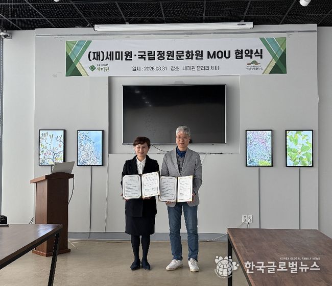 (한국글로벌뉴스 - 박소연 기자) 재단법인 세미원과 국립정원문화원은 지난 3월 31일 세미원에서 상호 협력을 위한 업무협약(MOU)을 체결했다.