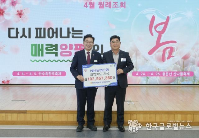 (한국글로벌뉴스 - 박소연 기자) 양평군은 지난 4월 1일 NH농협은행 양평군지부로부터 제휴카드 적립기금 1억 256만 원을 기금 수입금으로 전달받았다고 밝혔다.