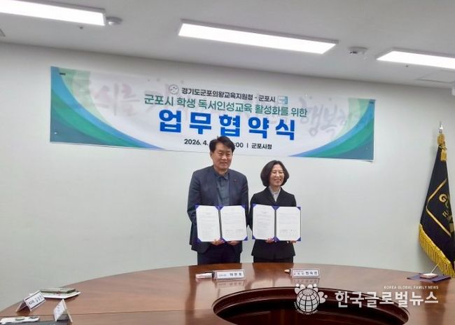 (한국글로벌뉴스 - 박소연 기자) 경기도군포의왕교육지원청과 군포시는 4월 8일 군포시청에서 '지역독서 징검다리'사업 추진을 위한 독서인성교육 활성화 업무협약을 체결했다.