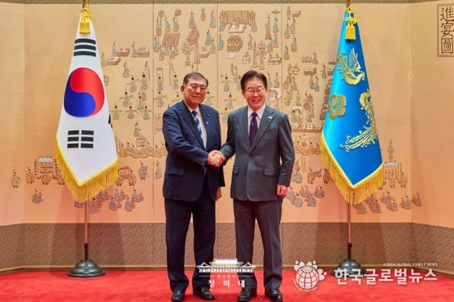(한국글로벌뉴스 - 박소연 기자) 이재명 대통령은 8일 12시부터 약 90분간, 방한한 이시바 시게루(石破 茂) 전 일본 총리와 오찬을 가지고, 한일관계 발전 방향과 최근 국제정세 등에 대해 의견을 교환했다.