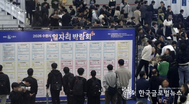 (한국글로벌뉴스 - 박소연 기자) 수원특례시가 9일 수원컨벤션센터 전시홀에서 개최한 ‘2026 수원시 일자리박람회’에 2028명이 찾았다.