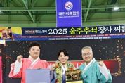 (한국글로벌뉴스 - 박지형 기자) 증평군청 인삼씨름단(감독 연승철, 코치 서수일) 소속 이완수 선수가 울산광역시 울주군 울주종합체육관에서 열린 ‘위더스제약 2025 울주추석장사씨름대회’에서 소백장사(72kg이하) 타이틀을 거머줬다. 이완수 선수는 4일 열린 결승전에서 울주군청 소속 김덕일 선수를 접전 끝에 3-2로 제압, 개인 통산 세 번째 장사에 오르는 영예를 안았다. 이 선수는 8강에서 임주성(MG새마을금고씨름단), 4강에서 이현서(의성군청) 선수를 각각 2-1로 승리하며 결승에 진출했다. 결승전에서는 홈그라운드 이점을 안고 나온 김덕일 선수에게 초반 두 판을 내줬으나, 3판째 김 선수의 경고패로 한 점을 만회하며 분위기를 바꿨다. 이후 두 판 연속 강력한 잡채기로 상대를 넘어뜨리며 극적인 역전승을 거뒀다. 이번 우승으로 이 선수는 지난 ‘2025 설날장사씨름대회’ 소백장사에 이어 올 시즌 2관왕을 달성, 씨름 명문 증평군청 인삼씨름단의 위상을 다시 한 번 높였다. 연승철 감독은 “증평군민들에게 추석장사씨름대회에서 승리의 소식을 안겨주게 돼 매우 기쁘다”며 “이번 대회 남은 체급에서