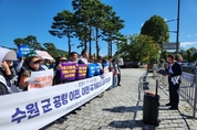 (한국글로벌뉴스 -박소연 기자) 수원군공항이전 및 경기통합국제공항 추진 시민협의회(이하 ‘시민협의회’)는 10월 16일(목) 서울 용산구 소재 국방부 전쟁기념관 앞에서 ‘수원 군 공항 이전 범정부 TF 구성’을 촉구하는 집회를 열었다. 이번 집회는 2017년 국방부의 예비이전후보지 선정 이후 지자체 간 의견 차이 등으로 수년간 답보 상태에 놓인 군 공항 이전 문제를 정부가 나서서 조속히 해결해 줄 것을 촉구하기 위해 마련되었다. 집회 참가자들은 국가가 주도적으로 범정부 TF를 구성하여 전담 조직을 마련하고, 유관 부처 간 원활한 소통과 신속한 의사결정을 통해 군 공항 이전 사업을 적극 지원할 것을 요구하였다. 조철상 시민협의회 회장은 “군 공항 이전은 단순한 이전 사업을 넘어 지역 주민의 삶의 질 향상과 지역 균형 발전을 위한 국가적 과제”라며, “정부가 범정부 TF를 신속히 구성하여 사업이 효율적으로 추진될 수 있도록 나서야 한다”고 강조했다.