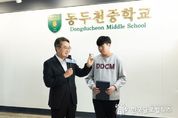 (한국글로벌뉴스 - 박소연 기자) 김동연 경기도지사가 16일 동두천중학교를 찾아 노점 할머니께 비상금을 건넨 선행으로 화제가 된 옥현일 군에게 표창을 수여했다. 김 지사는 학교 현관에서 학생회와 함께 ‘함께라서 더 빛나는 우리’ 생명존중 캠페인에 동참하고, 이어 1층 로비에서 옥현일 군에게 표창장을 전달했다. 옥현일 군은 지난 7월 폭염 속에서 노점상 할머니에게 비상금 3만 원을 건네고 콩 한 봉지를 받은 사연이 알려지며 주목받았다. SNS에 게시된 영상은 인근 공방 운영자가 촬영한 것으로, 현일 군이 남모르게 베푼 선행이 담겨 3일 만에 206만 조회수, ‘좋아요’ 약 7만, 댓글 2,500개 이상을 기록했다. 당시 현일 군은 “더운 날씨에 할머니가 물건을 빨리 팔고 쉬셨으면 좋겠다는 마음이었다”고 말해 많은 시민에게 감동을 줬다. 김동연 지사는 이날 인사말을 통해 “옥현일 군이 도운 할머니가 우리의 어머니, 할머니”라며 “수많은 옥현일 군이 동두천중에 있다고 본다. 그것이 사람 사는 세상”이라고 말했다. 이어 “여러분이 그런 따뜻한 마음을 갖길 바란다. 당장은 남을 위한 배려 같지만 길게 봐서 인생에서 나를 스스로 행복하게 하는 길이라는 것을 시간이 한참