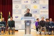 (한국글로벌뉴스 - 박지형 기자) 마포구는 11월 16일 오전, 망원유수지 족구장에서 ‘제23회 마포구청장기 족구대회’를 개최했다. 올해로 23회를 맞는 본 대회는 지역 생활체육 활성화와 구민 간 화합을 도모하기 위해 마련됐다. 오전 10시 시작된 박강수 마포구청장의 개회선언을 시작으로 내빈소개, 우승기 반환, 유공자 표창, 인사말씀, 선수선서 순으로 차례로 진행됐다. 37개 팀에서 참가한 선수 180명과 관계자 20명 등 총 200여 명이 함께했으며, 토너먼트 방식으로 경기가 진행됐다. 선수들은 민첩함과 팀워크를 바탕으로 갈고닦은 기량을 마음껏 선보이며 열띤 분위기를 이뤘다. 또한 경기가 펼쳐진 현장에는 선수들을 응원하기 위한 주민들의 발길이 이어져 응원 열기 또한 뜨거웠다. 한편 마포구는 안전한 경기 진행을 위해 현장 의료지원과 운영 인력을 배치해 대회가 원활하게 진행될 수 있도록 지원했다. 박강수 마포구청장은 축사를 “족구는 팀워크와 집중력이 중요한 우리 고유의 생활체육 종목으로, 오늘 대회를 통해 구민 모두가 건강과 친목을 함께 나누는 뜻깊은 시간이 되기