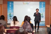 경기도교육청(교육감 이재정)은 12월 26일부터 27일까지 ‘2018 교육장 워크숍’을 개최했다. 이번 워크숍은 경기혁신교육3.0* 추진을 위한 2019년 경기교육 핵심 정책 및 교육지원청 중심의 혁신학교 운영 등 교육 현안을 공유하고 협의하는 자리로 마련됐으며, 이재정 교육감과 교육장 25명이 함께 했다. 경기혁신교육3.0은 경기교육을 추진하는 방향이고 지향임. 학교와 마을이 협력하여 민주적 교육자치의 토대를 만들고, 모든 학교가 혁신학교의 기본 운영 원리를 실천하면서 저마다의 특색을 살려나가자는 의미를 담고 있음. 워크숍은 ▲미래사회 리더십 전문가 특강, ▲2019 경기교육기본 계획 및 주요 정책 공유, ▲지역 현안 공유 및 대응 방안 공동 논의, ▲교육지원청 중심의 혁신학교 운영 방안 소개, ▲교육감 간담회, ▲권역별 교육장 협의 등으로 진행됐다. 이 자리에서 이재정 교육감은 ‘경기교육, 미래진단’을 주제로 교육장들과 함께 혁신교육3.0, 조직 개편, 정책중심의 교육청과 지원청의 지원 강화, 학교자치 등에 대해 교육장들과 소통의 시간을 가졌다. ‘미래사회 리더십’을 주제로 특강에 나선 김