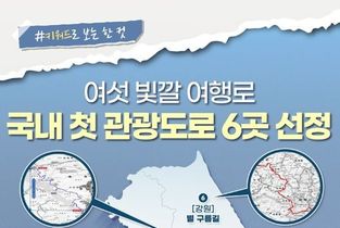 (한국글로벌뉴스 - 김정현 기자) ‘제천 청풍경(淸風景)길’이 국토교통부가 선정한 대한민국 관광도로 6곳 가운데 하나로 공식 지정됐다. 이번 지정은 24년 10월 관광도로 제도가 시행된 이래 첫 번째 선정 사례로 의미가 크다. 제천시는 올해 6월 국토교통부 관광도로 지정 공모를 신청, 1차 서면평가와 2차 현장평가를 거쳐 11월 국토교통부 도로정책 심의위원회 종합평가를 통해 충청권 제1호 관광도로 지정 공모에 최종 선정되는 쾌거를 이뤘다. ‘제천 청풍경길’은 내륙의 바다라 불리는 청풍호반이 위치한 청풍면 도화리(청풍교입구)부터 수산면 상천리(옥순대교)까지 12.9km 구간이다. 시점부(청풍대교)부터 5.43km 구간 도로에는 주∙야간 경관 조성 등 복합적인 개발을 통해 자연환경 중심 관광이 가능하며, 솟대문화공간 인근 0.5km 구간에는 숙박 편의시설 중심으로 구성된다. 이어 옥순대교까지 6.97km 구간은 자전거도로 신설 등으로 관광 기반을 한층 강화한다. 관광도로 내 4개 조망지점과 청풍문화유산단지, 청풍호반 케이블카, 청풍랜드, 옥순봉 출렁다리, 청풍호 카약체험장, 비봉산 둘레길, 옥순봉 등 인근 주요 관