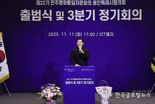 (한국글로벌뉴스 - 박소연 기자) 용인특례시는 11일 기흥ICT밸리에서 ‘제22기 민주평화통일자문회의 용인시협의회’가 ‘제22기 협의회 출범식’을 개최했다고 12일 밝혔다. 이날 행사엔 이상일 시장과 추상구 민주평통 용인시협의회장을 비롯한 자문위원 200여 명이 참석해 출범을 축하했다. 이 시장은 새로 위촉된 자문위원 대표 6명에게 위촉장을 전수하고, 평화통일 기반 조성에 이바지한 공로로 자문위원 2명에게 표창장을 수여했다. 이 시장은 “‘평화통일이 과연 가능할까’ 회의가 드는 상황에서도 지역의 훌륭한 지도자들이 우리가 결코 놓칠 수 없는 중대 과제인 ‘평화통일’을 위해 힘을 모아주고 계시는 민주평통 관계자들께 응원의 뜻을 전한다”고 말했다. 추상구 회장은 “지역사회와 함께 평화와 번영의 한반도를 만들어 가겠다”며 “자문위원들과 협력해 시민 공감형 통일 활동을 확대하겠다”고 했다. 제22기 민주평통은 2025년 11월 1일부터 2027년 10월 31일까지 2년간 평화 공존과 번영의 한반도 구현을 위한 평화통일 의견 수렴‧정책건의, 평화통일기반 조성 등 역할을 수행한다. 이번 제22기 용