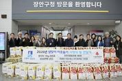 (한국글로벌뉴스 - 박소연 기자) 수원시 장안구에 위치한 예스식자재마트에서 지난 5일, 설 명절을 맞아 장안구에 백미 100포를 기부했다. 장안구는 기부받은 백미를 각 동에 전달하여 복지사각지대에 놓인 지역 저소득 가구에 지원하는 등 취약계층 지원에 활용할 예정이다. 유용현 대표는 "명절을 맞아 어려운 이웃들에게 조금이나마 도움이 되길 바란다”며 “앞으로도 지역사회에 보탬이 되도록 나눔을 이어가겠다"고 말했다. 이일희 장안구청장은 "모두가 힘든 시기임에도 이렇게 기부해주셔서 정말 감사드린다"며 "이웃돕기에 솔선수범하는 마음을 헤아려 어려운 이웃들에게 따뜻한 마음을 정성껏 전달하겠다"고 말했다.