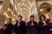 (한국글로벌뉴스 - 박소연 기자) 이재명 대통령과 김혜경 여사가 25일 서울 중구 명동대성당에서 열린 성탄 대축일 미사에서 기도를 하고 있다.