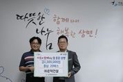 (한국글로벌뉴스 - 박소연 기자) ㈜한수코퍼레이션은 최근 설악면 행정복지센터를 찾아 과채주스 52박스(140만 원 상당)를 기탁했다. 전달식에서 이세진 대표는 “㈜한수코퍼레이션은 예비사회적기업으로서 지역사회와 함께 사회적 가치를 실현한다는 책임감을 갖고 있다”며 “이번 기부를 계기로 앞으로도 나눔 활동을 지속적으로 펼쳐 나가겠다”고 밝혔다. 이동철 설악면장은 “지역사회를 위해 따뜻한 마음을 전해준 ㈜한수코퍼레이션에 깊이 감사드린다”고 말했다.