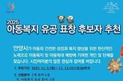 (한국글로벌뉴스 - 박소연 기자) 안양시는 오는 12일까지 아동의 건전한 성장과 복지 향상에 헌신한 시민과 단체를 발굴 및 격려하고자 ‘아동복지 유공 표창’ 후보자를 추천받는다고 5일 밝혔다. 표창 분야 및 규모는 ▲아동복지 유공 분야 4점 ▲아동학대 예방 유공 분야 2점으로 총 6점이다. 대상자격은 안양시민, 사회복지사, 단체 등으로 아동학대 예방, 아동보호, 아동권리 증진 및 아동복지 향상 등에 기여한 자이고 해당 분야에 공고일 기준 1년 이상 직접 참여해 현저한 공적이 있어야 한다. 희망자 또는 후보자를 추천하려는 사람은 추천권자를 통해서 신청서, 공적조서, 증빙자료 등을 이메일, 방문 또는 우편(안양시청 아동과)으로 제출할 수 있다. 추천권자는 안양시 소속 기관의 장(부서장, 동장, 산하기관장)이거나 관내 협업기관장 또는 사회복지사업법 제2조1호에 열거된 사회복지사업 관련 법률에 따른 사회복지시설의 장 등이다. 선정결과는 이달 18일경 홈페이지를 통해 발표하며, 오는 12월 시상식을 개최할 예정이다. 유공자 표창의 선발기준, 선정결과 발표 등 자세한 사항은 안양시 홈페이지에서 확