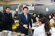 (한국글로벌뉴스 - 박소연 기자) 수원특례시 영통구는 지난 5일, 이재준 시장이 영통구청을 방문해 직원들과 함께하는 격려 오찬 자리를 가졌다고 밝혔다. 이번 행사는 구내식당‘영통정담’에서 직원 110여 명과 오찬을 함께한 뒤, 차담을 나누는 일정으로 진행됐다. 직원들의 일상적인 식사 공간에서 마련된 자리인 만큼, 형식에 얽매이지 않은 편안한 분위기 속에서 자연스러운 소통이 이어졌다. 이날 오찬은 혼합잡곡밥과 쇠고기국, 청양풍 찜닭, 비엔나만두강정, 물미역 등으로 차려져, 소박하지만 정성이 담긴 식사를 통해 직원 간 화합과 공감의 시간이 이어졌다. 이재준 시장은 “그간 각자의 자리에서 묵묵히 시정을 뒷받침해 온 영통구 직원 여러분의 노고에 감사드린다”며, “현장에서 시민과 가장 가까이에서 일하는 공무원들의 역할이 곧 수원의 경쟁력”이라고 격려했다. 장수석 영통구청장은 “이번 자리는 직원들과 함께하는 일상의 시간을 통해 소통의 의미를 다시 한번 되새길 수 있었던 자리였다”며, “직원들에게 작은 쉼과 격려가 되는 시간이 되길 바란다”고 전했다. 한편, 영통구는 앞으로도 다양한 소통의 자리를