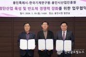 (한국글로벌뉴스 - 박소연 기자) 용인특례시는 19일 시청 접견실에서 한국기계연구원(KIMM), 용인시산업진흥원과 ‘첨단산업 육성 및 반도체 경쟁력 강화를 위한 업무협약’을 체결했다. 이날 협약은 기업 단독으로는 활용이 어려운 국가 연구 인프라를 지역 기업이 활용할 수 있도록 하고자 마련됐다. 협약 내용은 ▲첨단산업 분야 연구개발·상용화 상호 협력 ▲소부장 기업 기술 실증(시험·평가·인증 등)·사업화 지원 추진 ▲첨단산업 분야 정부 기반 구축 사업·연구개발(R&D) 공모사업 유치 협력 ▲한국기계연구원 시설·연구개발 장비 등 활용 사업 ▲첨단기술 활용 맞춤형 R&D 정책 과제 기획·추진 등이다. 협약에 따라 용인지역 기업은 국가 연구기관의 시험·평가 인프라를 활용한 실증화와 사업화 등 실질적 지원을 받을 수 있게 된다. 시는 이번 협약을 계기로 용인에 유치한 한국전자통신연구원, 용인지식재산(IP)지원센터, 인공지능(AI)무역센터와 함께 지·산·학·연 협력 기반을 기업 성과 중심으로 한 단계 끌어올린다는 방침이다. 이상일 시장은 “용인의 반도체산업 경쟁력 강화를 위해 한국기계연구원이 우리