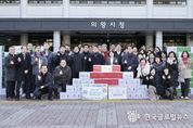 (한국글로벌뉴스 - 박소연 기자) 의왕시가 새중앙교회로부터 크리스마스를 맞아 어려운 이웃을 돕기 위한 생필품 꾸러미 ‘사랑의 천사박스’ 1,004상자(약 4,000만 원 상당)를 기부받았다고 밝혔다. 시청 본관 앞 광장에서 열린 전달식에는 새중앙교회 황덕영 담임목사와 나문성·박재관 목사, 이칠수·신종범·김경화 장로 등 새중앙교회 관계자들이 참석해 따뜻한 나눔의 뜻을 함께했다. 새중앙교회 황덕영 담임목사는“크리스마스를 맞아 소외된 이웃들에게 사랑을 전하고자 하는 성도들의 마음을 모아 사랑의 천사박스를 준비했다”며“이 작은 정성이 어려운 이웃들에게 위로가 되고, 따뜻한 겨울을 보내는 데 도움이 되기를 바란다”고 말했다. 방경미 복지문화국장은“해마다 변함없이 나눔을 실천해 주시는 새중앙교회와 성도 여러분께 깊이 감사드린다”며“시에서도 소외되는 이웃이 없도록 지역사회를 더욱 세심하게 살피고, 촘촘한 복지 지원에 최선을 다하겠다”고 밝혔다. 한편, 이날 기부된 생필품 꾸러미는 경기사회복지공동모금회에 기탁 처리된 후, 관내 저소득층 가구에 전달될 예정이다.