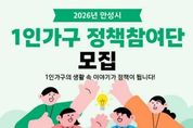 (한국글로벌뉴스 - 박소연 기자) 안성시는 1인가구 시민의 생활 속 이야기와 의견을 정책에 담기 위해 '2026년 안성시 1인가구 정책참여단'을 오는 2월 27일까지 공개 모집한다고 밝혔다. 정책참여단은 1인가구의 일상에서 느끼는 고민과 생생한 의견을 공유하고, 수렴된 의견을 정책 검토 과정에 반영하기 위해 운영된다. 모집 인원은 총 10명으로, 1인가구 정책에 관심 있는 19세 이상의 안성시민 또는 안성시에 생활 기반을 둔 사람이라면 누구나 신청할 수 있다. 특히 현재 1인가구로 생활하고 있는 시민을 우선 선발해, 당사자의 경험과 목소리가 정책에 보다 충분히 반영될 수 있도록 할 계획이다. 선정된 정책참여단은 2026년 3월부터 2027년 12월까지 약 2년간 활동하며, ▲1인가구 정책 관련 의견 제시 ▲1인가구 지원 시책 홍보활동 ▲역량강화교육 등에 참여하게 된다. 안성시 관계자는 “1인가구 정책은 시민의 삶에서 출발해야 한다”며 “정책참여단 운영을 통해 1인가구 시민의 다양한 의견을 직접 듣고, 실효성 있는 정책으로 이어가겠다”고 말했다.