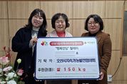 (한국글로벌뉴스 - 박소연 기자) 오산시 대원2동 행정복지센터는 지난 24일 오산시지속가능발전협의회로부터 취약계층 지원을 위한 쌀 10kg 10포를 기탁받았다고 밝혔다. 이번 기탁은 오산시지속가능발전협의회가 나눔장터 운영을 통해 마련한 수익금을 지역사회에 환원하고자 추진된 것으로, 지역 내 소외된 이웃의 생활 안정을 돕고 지속가능한 나눔과 상생의 가치를 실천하기 위한 의미 있는 활동이다. 전달된 쌀은 대원2동 관내 저소득 가구와 복지 사각지대에 놓인 이웃들에게 지원될 예정이다. 남대성 오산시지속가능발전협의회 상임의장은 “지역사회 구성원으로서 어려운 이웃과 나눔을 실천하는 것은 중요한 책무라고 생각한다”며 “앞으로도 환경·복지·공동체가 조화를 이루는 지속가능한 지역사회를 만들기 위해 다양한 나눔 활동을 이어가겠다”고 말했다. 김소영 대원2동장은 “지역사회를 위한 따뜻한 나눔을 실천해 주신 오산시지속가능발전협의회에 깊이 감사드린다”며 “기탁해 주신 쌀은 도움이 꼭 필요한 이웃들에게 소중히 전달하겠다”고 밝혔다.