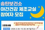 (한국글로벌뉴스 - 박소연 기자) 평택시는 시민의 건강증진과 규칙적인 신체활동 실천을 돕기 위해 ‘2026년 송탄보건소 야간건강 체조교실’을 운영한다. ‘2026년 송탄보건소 야간건강 체조교실’은 이충 레포츠공원 광장에서 운영되며 기존 주 2회에서 주 3회로 운영 횟수를 확대해 시민들이 더 꾸준하게 운동에 참여할 수 있도록 했다. 프로그램은 3월 30일부터 10월 30일까지 매주 월·수·금 오후 7시부터 8시까지 운영되며, 전문 강사가 음악에 맞춰 스트레칭과 체조를 진행할 예정이다. 특히 송탄보건소는 7월 무더위와 장마로 인한 휴강 기간에도 운동 공백이 발생하지 않도록 비대면 프로그램을 병행 운영한다. 해당 기간에는 네이버 밴드를 활용한 운동 영상을 제공해 참여자들이 일상에서도 꾸준히 신체활동을 이어갈 수 있도록 지원할 계획이다. 참여 신청은 3월 16일부터 네이버 폼을 통해 가능하며 지속적인 참여가 가능한 평택시민 100명을 모집한다. 송탄보건소 관계자는 “올해 야간건강 체조교실은 시민들이 규칙적으로 운동하는 습관을 기를 수 있도록 운영하고, 무더위 휴강 기간에는 비대면 운동 프로그램도 함께 제공