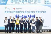 (한국글로벌뉴스 - 박소연 기자) 광명시가 대한적십자사 광명시지부 출범 2주년을 맞아 지방정부와 적십자사가 협력하는 ‘광명 인도주의 모델’을 전국으로 확산한다고 30일 밝혔다. 시는 시범운영 기간을 1년 연장한 2026년을 ‘인도주의 사업 고도화의 해’로 지정하고, 지방정부 인도주의 사업의 표준 모델을 정립한다는 구상이다. 대한적십자사 광명시지부는 지난 2024년 10월 대한적십자사 창립 119년 역사상 이례적으로 시 단위에서 출범한 조직으로, 지난 2년간 지역 밀착형 인도주의 사업을 안정적으로 정착시켜 왔다. 앞서 2024년 7월 경기지사와 업무협약을 시작으로 사무실 무상 임대와 고향사랑기금 연계 사업 등 체계적인 행정 기반을 마련했다. 그 결과 출범 2년 만에 누적 후원금 3억 1천만 원을 달성하며 광명형 기부·나눔 플랫폼을 구축했다. 특히 대표 사업인 ‘황금도시락’은 중장년 1인 가구의 결식과 사회적 고립을 예방하는 혁신적인 민관 협력 모델로 자리 잡았다. 기부자, 수혜자, 소상공인이 함께하는 이 사업은 복지 사각지대 해소와 지역경제 활성화 성과를 인정받아 지방정부 최